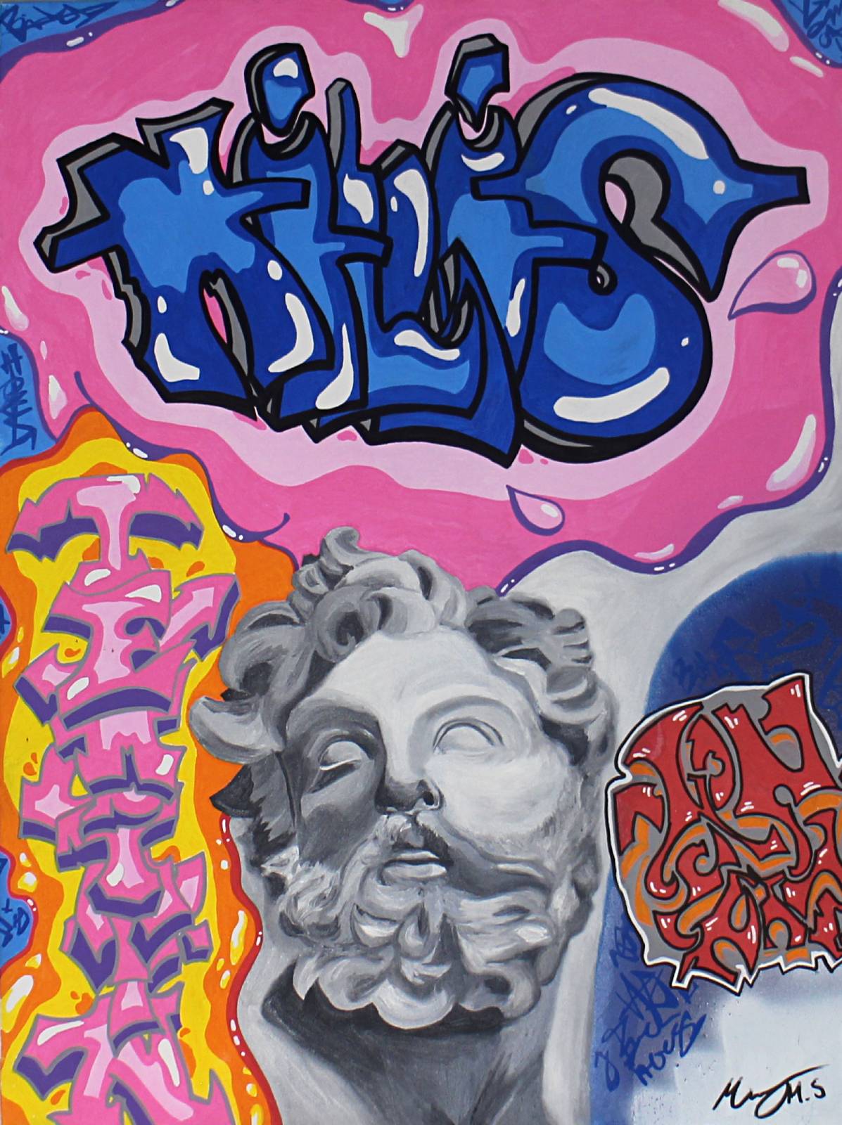 Milla is a Stockholm based artist who transforms canvases into dynamic expressions of creativity. In the quiet solitude of her studio, she brings the essence of Stockholm´s urban chaos onto traditional canvases. Here, the controlled mess of spray paint meets the precision of brush strokes, creating a fusion of raw street aesthetics and refined artistic expression. Each canvas becomes a curated testament to her ability to seamlessly transition between the unbridled energy of outdoor graffiti and the introspective world of studio art.